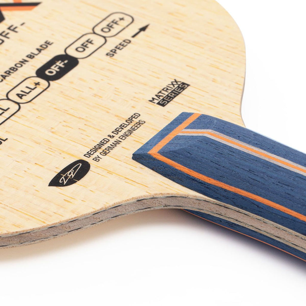 GEWO Matrixx blades are the ideal choice for ambitious table tennis players looking for maximum precision with explosive power. Thanks to innovative fiber lamination with epoxy resin, these blades combine excellent ball control with the dynamics of modern carbon blades. A system of interconnected individual factors (Matrixx) is used as a molded part to optimally support the fibers and distribute the forces acting on the molded part. This ensures consistent and dynamic ball bounce without loss of (impact) energy.
